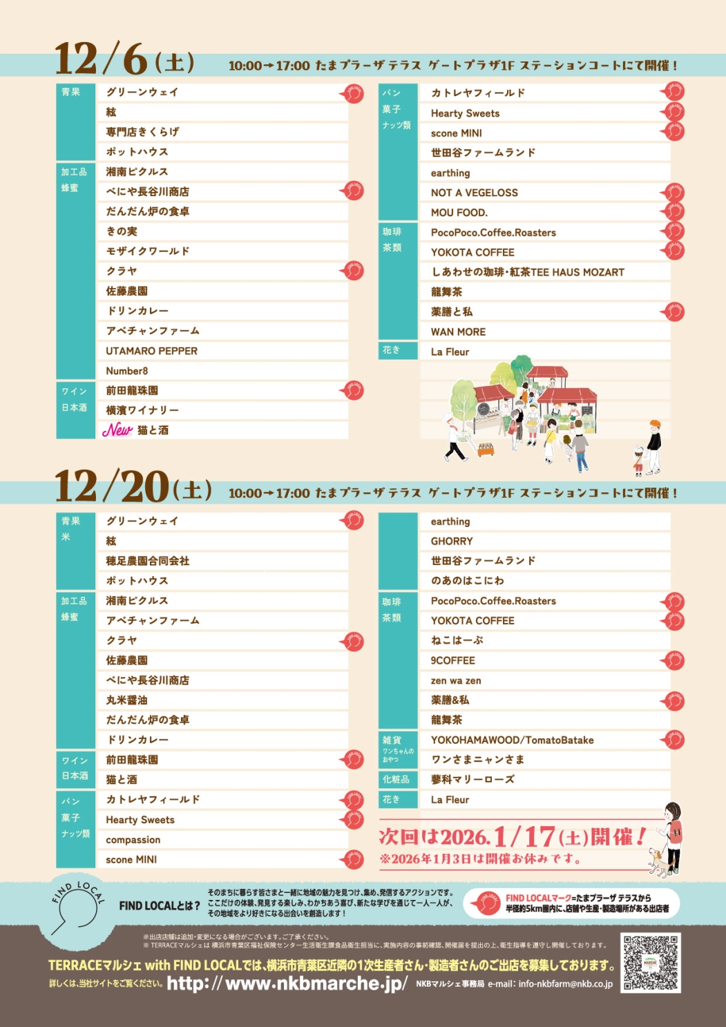 - たまプラーザ テラスから半径5㎞圏内で生産・製造をされている出店者さんを中心に、